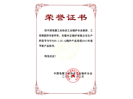 2015年11月, WNS6-1.25-Q型燃?xì)饫淠羝仩t榮獲工信部評選的"節(jié)能產(chǎn)品"