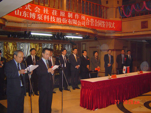 新聞中心 2005年4月27日,在博山萬杰國際大酒店山東博泵科技股份有限公司與日本株式會社荏原制作所正式簽署了注冊資本1100萬美元的合營公司――荏原博泵有限責任公司。該公司的建立將通過引進世界最大的泵企業(yè)――日本株式會社荏原制作所的先進技術,加快大型泵、高壓泵國產(chǎn)化進程,建成具有國際競爭力的一流企業(yè)。為中國水電、核電及超臨界火電項目,為南水北調(diào)等大型水力工程提供高質(zhì)量、高技術含量的一流泵產(chǎn)品,提升中國機械工業(yè)技術、質(zhì)量水平,促進產(chǎn)品更新?lián)Q代,為中國電力、冶金、水力事業(yè)的發(fā)展乃至中國國民經(jīng)濟的發(fā)展做出應有的貢獻。