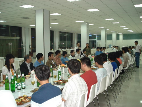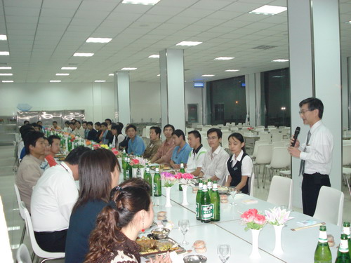 晚宴在輕快的音樂聲中舉行,總經(jīng)理孫龍平因公務(wù)無法前來,專門打電話表達(dá)了對(duì)員工的節(jié)日問候。公司董事長井上先生、常務(wù)副總鈴木先生先后致辭,表達(dá)了對(duì)員工節(jié)日的祝賀,同時(shí)談到了八月十五這一天,在日本也有全家人賞月的傳統(tǒng),故鄉(xiāng)的明月是所有游子魂?duì)繅衾@的情。自助式晚宴進(jìn)行得自由而輕松,員工之間頻頻舉杯,共敘友誼,并無多愁善感;人力資源部姜部長帶頭向員工一一祝酒,對(duì)員工的鼓勵(lì)溢于言表,整個(gè)餐廳觥籌交錯(cuò),其樂融融。