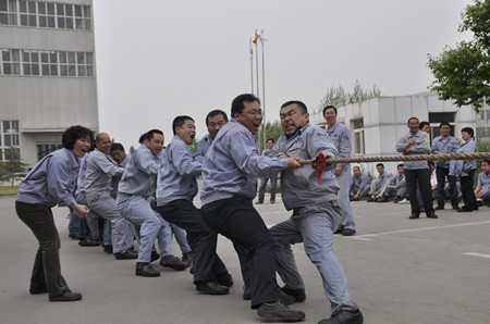 新聞中心為慶祝五?一勞動(dòng)節(jié),公司工會(huì)舉辦“第五屆員工拔河比賽”。4月30日下午,在辦公樓前200多名員工參加的拔河比賽正緊張進(jìn)行。參賽隊(duì)伍共有八支男隊(duì)、四支女隊(duì)。經(jīng)過(guò)緊張的角逐,焊接物流隊(duì)以絕對(duì)的優(yōu)勢(shì)力拔頭籌獲得男子冠軍,生產(chǎn)裝配隊(duì)獲得男子亞軍;生產(chǎn)部女隊(duì)獲女子冠軍。