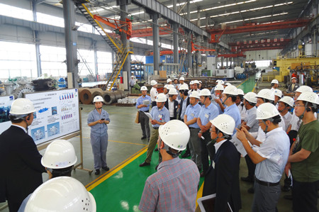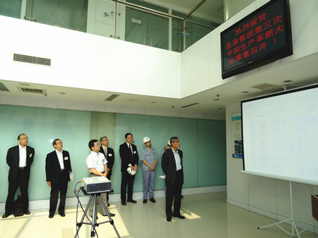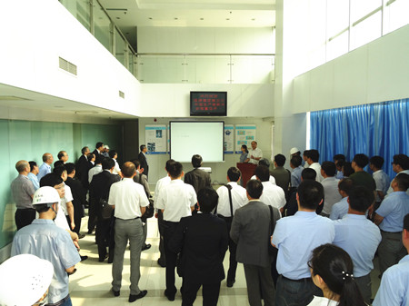 這次生產革新大會的目的是加速推進荏原集團內部各工廠的生產革新活動的開展,目標是生產周期減半、庫存減半、最大限度地提高生產效率,降低成本,增強企業(yè)競爭力。通過生產革新活動,達到從現(xiàn)場改善提升到管理系統(tǒng)改善、人的改善的目標,使“產品制作”流程優(yōu)化。在這次大會上,公司總經理王正軍向與會代表介紹了EMZ的經營發(fā)展狀況,并帶領與會人員參觀工廠,詳細介紹了生產革新的進展情況。
